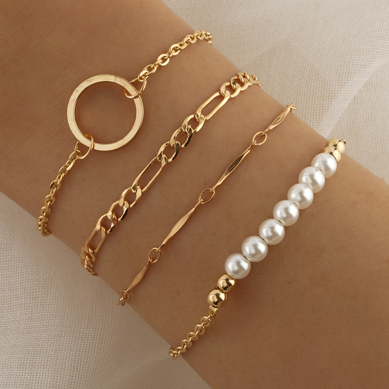 Product Details:Material: Copper Metal Chain Alloy ABS Pearl CCBType: BraceletStyle: UnisexColor: Gold 0095