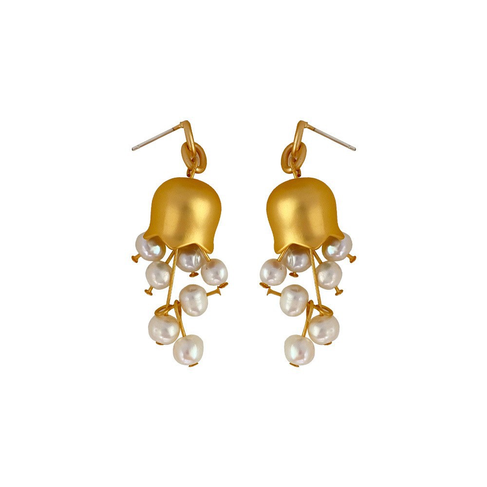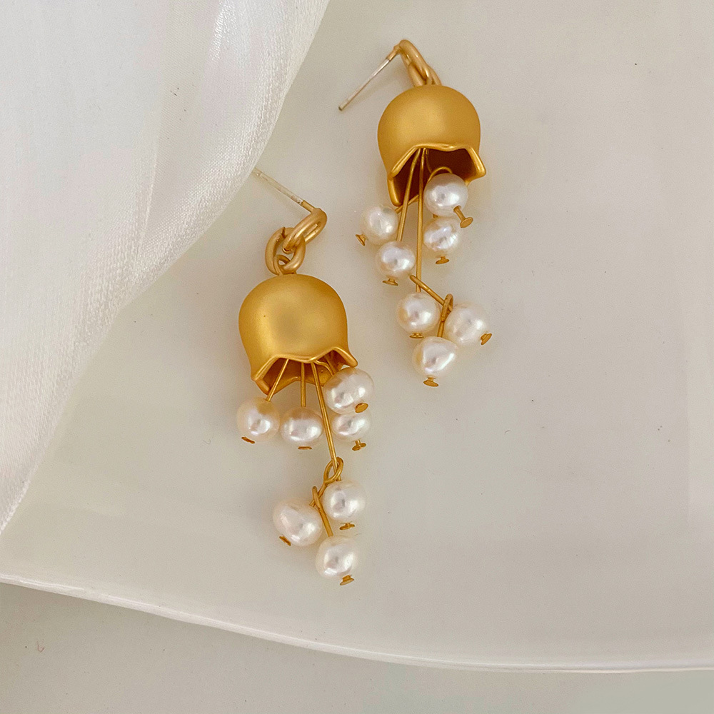 Material: PearlShape: GeometricColor: matte gold, matte silverPopular element: bell orchidStyle: French VintageApplicable audience: women