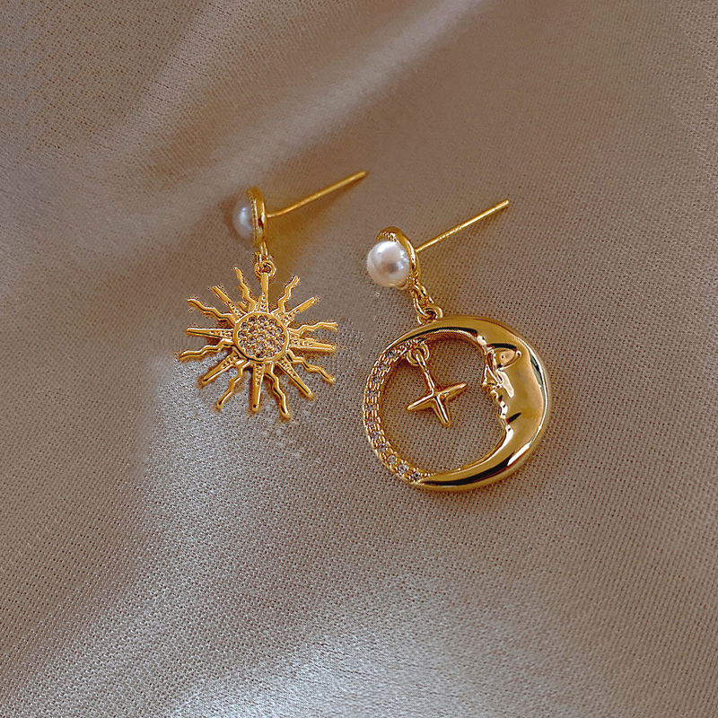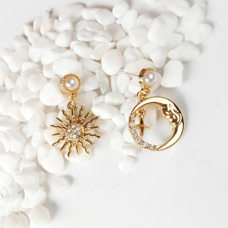 Product Information:Material Alloy Rhinestone PearlTreatment process electroplatingType EarringsStyle womenModeling Sun Moon Star Portrait PortraitMosaic material Rhinestone PearlPacking List:Ear studs*1