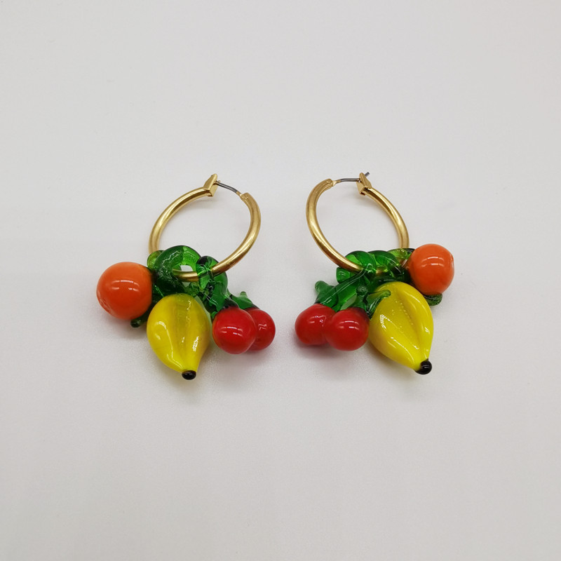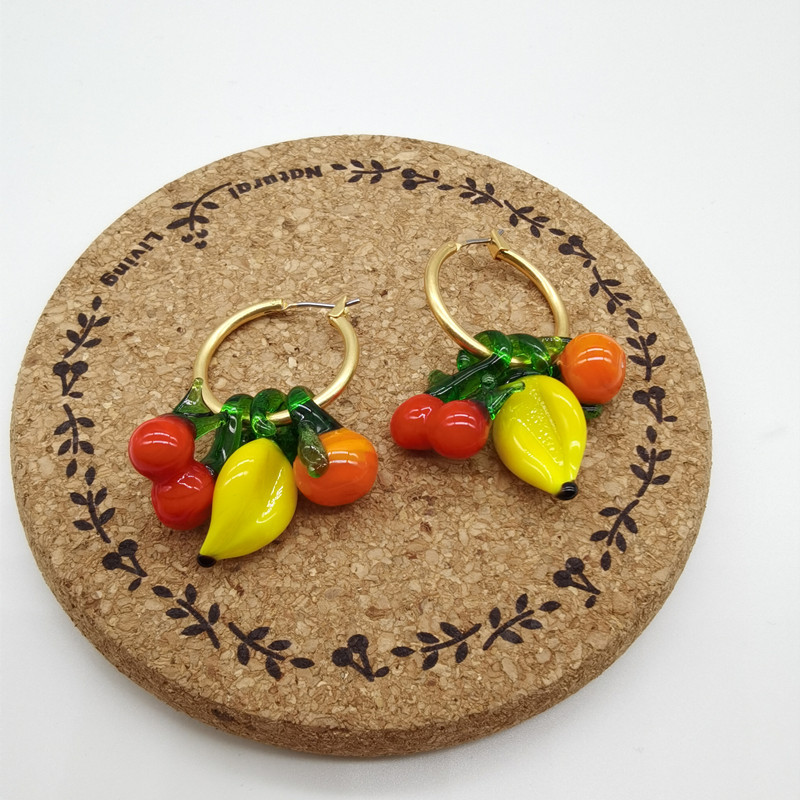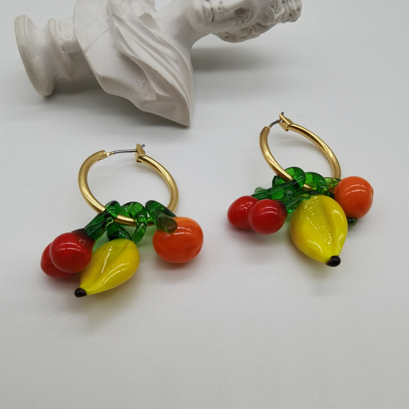 Product information:Type: earrings Color: Gold Product Size: earrings are about 4cm long Product material: copper plated real gold colored glaze Shape: fruit Popular elements: cartoon, retro, geometric Style: Simple