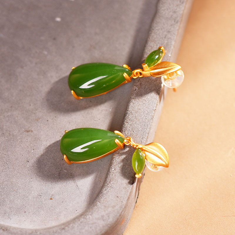 Product information:Treatment Process: Electroplating Color: Jasper leaf-shaped stud earrings Applicable people: Unisex Material: Silver Shape: Geometry Popular elements: Leaves Style: Retro