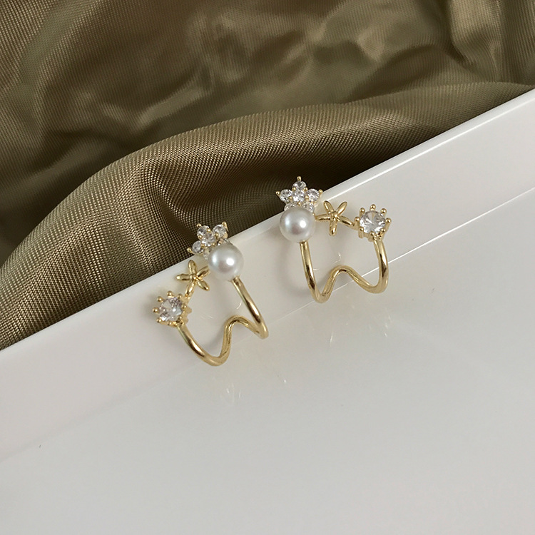 Material: CopperStyle: Women'sModeling: GeometricTreatment process: ZirconMosaic material: White gold/K white gold inlaid with gemsColor: Type A-925 silver needle with real gold plated, Type B-real gold plated ear bone clip
