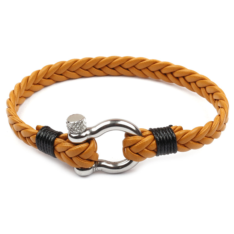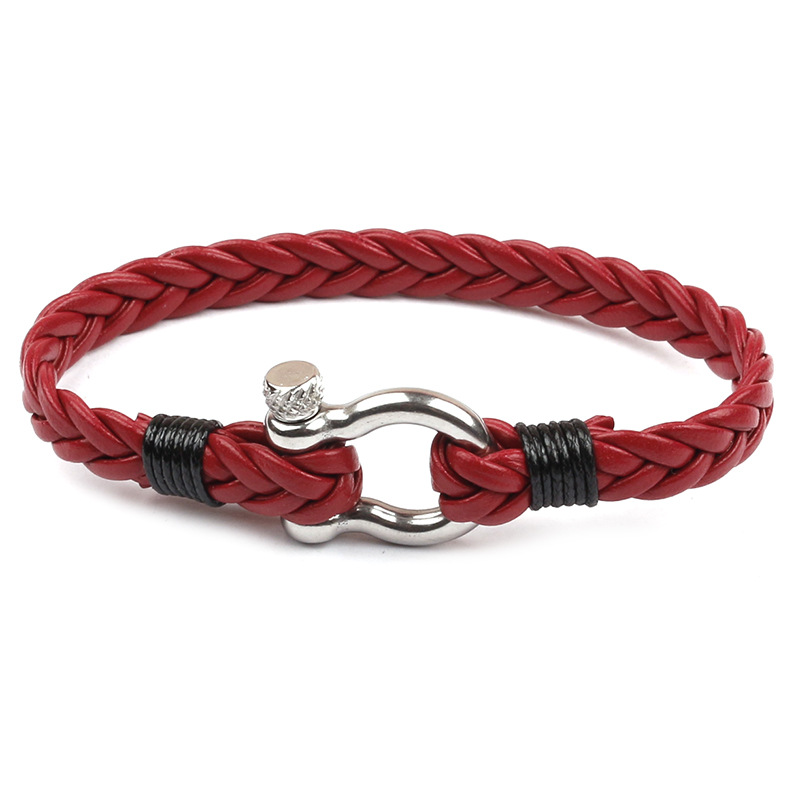 Material: Titanium steelType: Bracelets, braceletsStyle: UnisexModeling: GeometryPackaging: Individually packedInlaid material: Not inlaidColor: Black, gray, wine red, brown, brown, navy bluePacking list:Bracelet x1