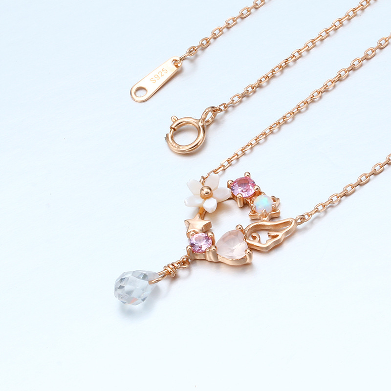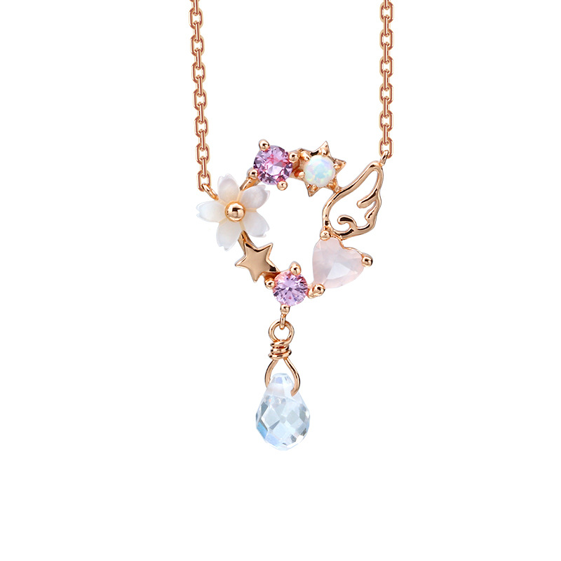 Product information:Style: CartoonMaterial: silverProcessing technology: jewel settingType: necklaceStyle: WomenShape: water dropColor: rose gold necklacePacking list:Necklace X1PCS