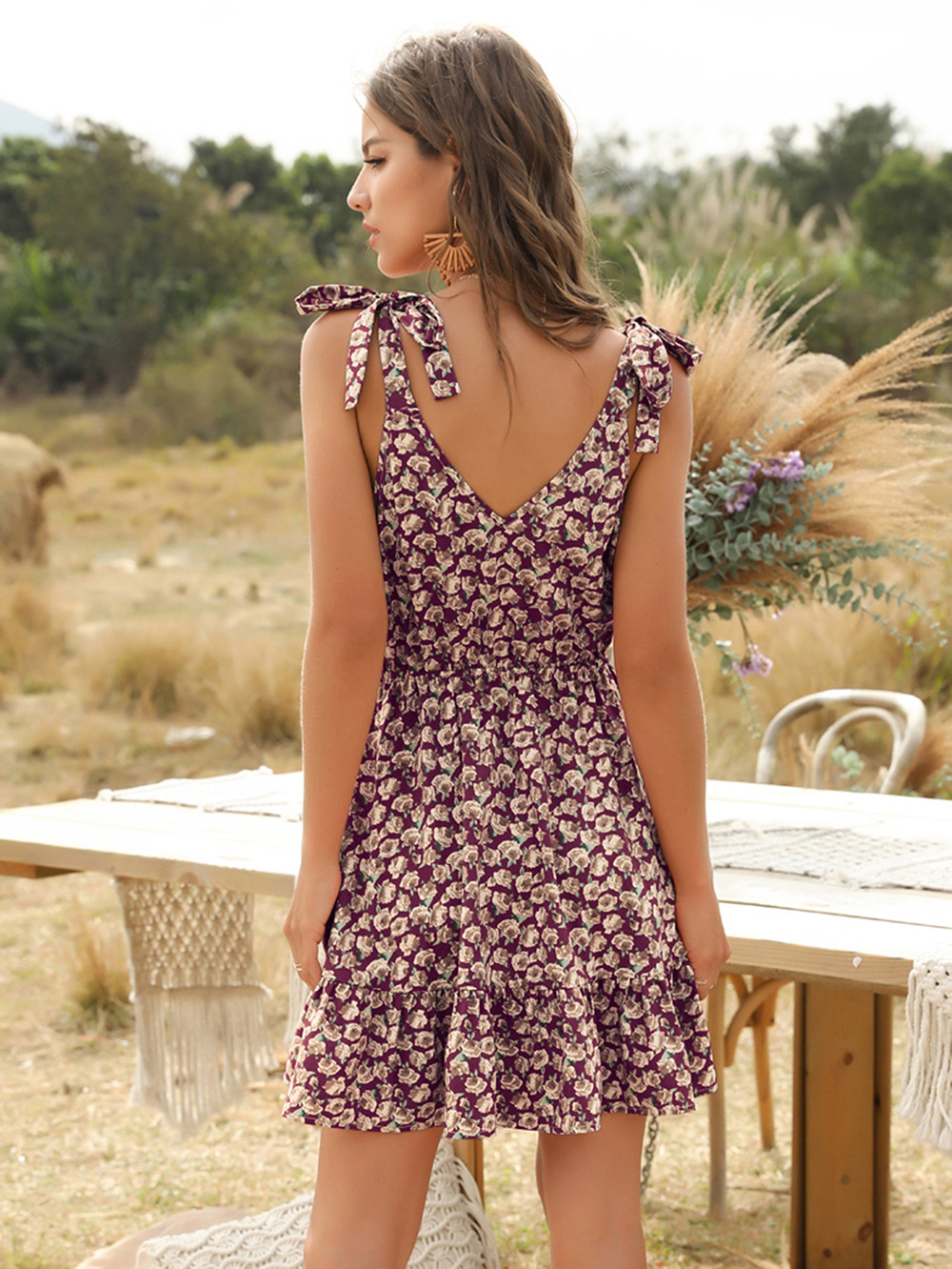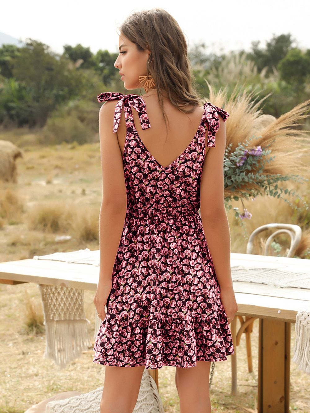 Red floral short skirt floral dress