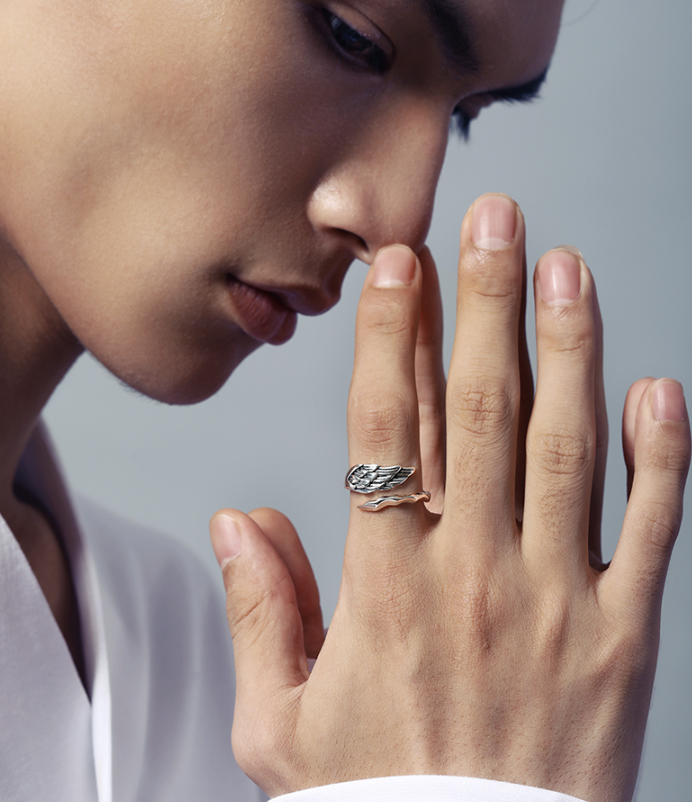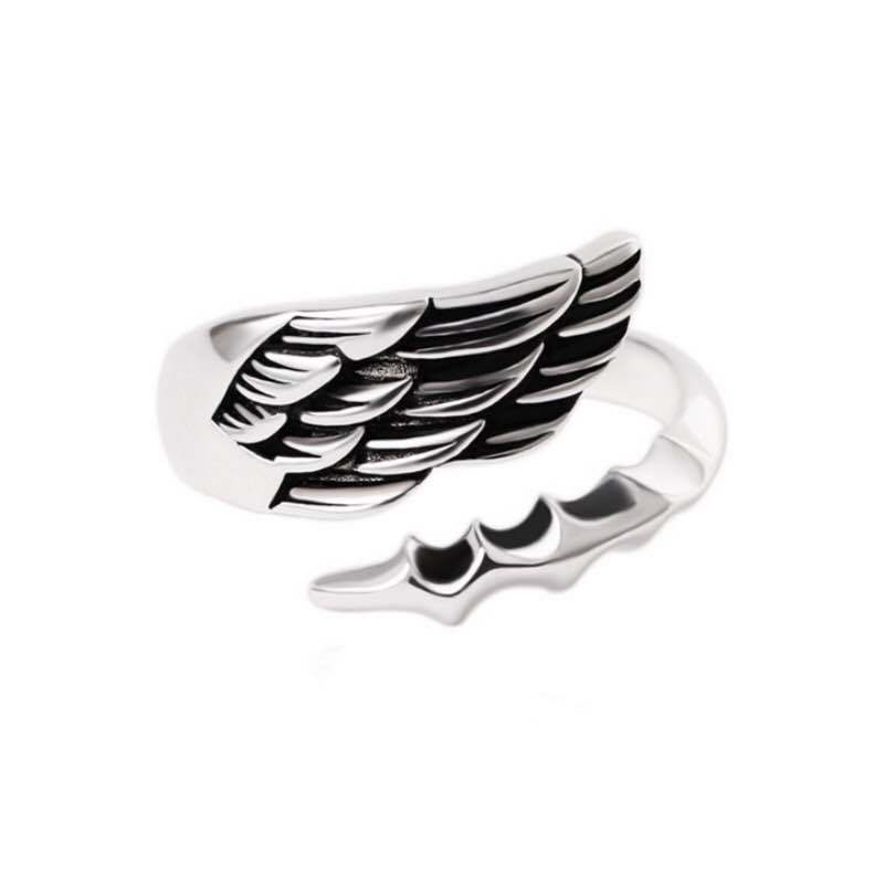 Angel demon Sterling Silver index finger ring male designer dark net red trendy punk hip hop