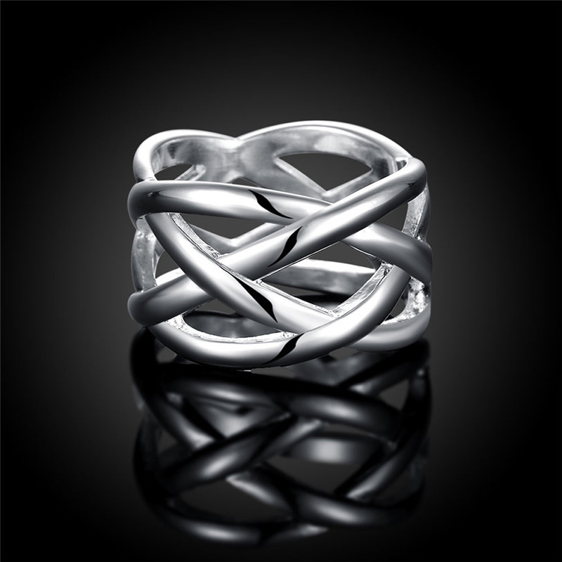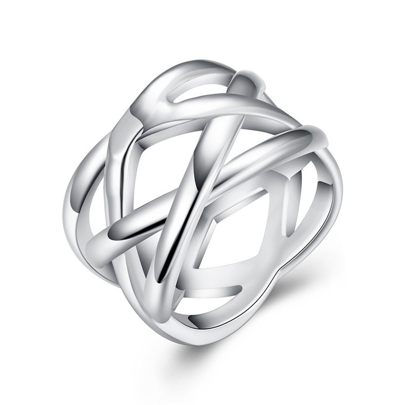 Type: RingMaterial: CopperStyle: Europe and AmericaShape: geometricTreatment process: electroplating silverStyle: couple styleColor: Fishnet RingSize: 6, 7, 8, 9, 10