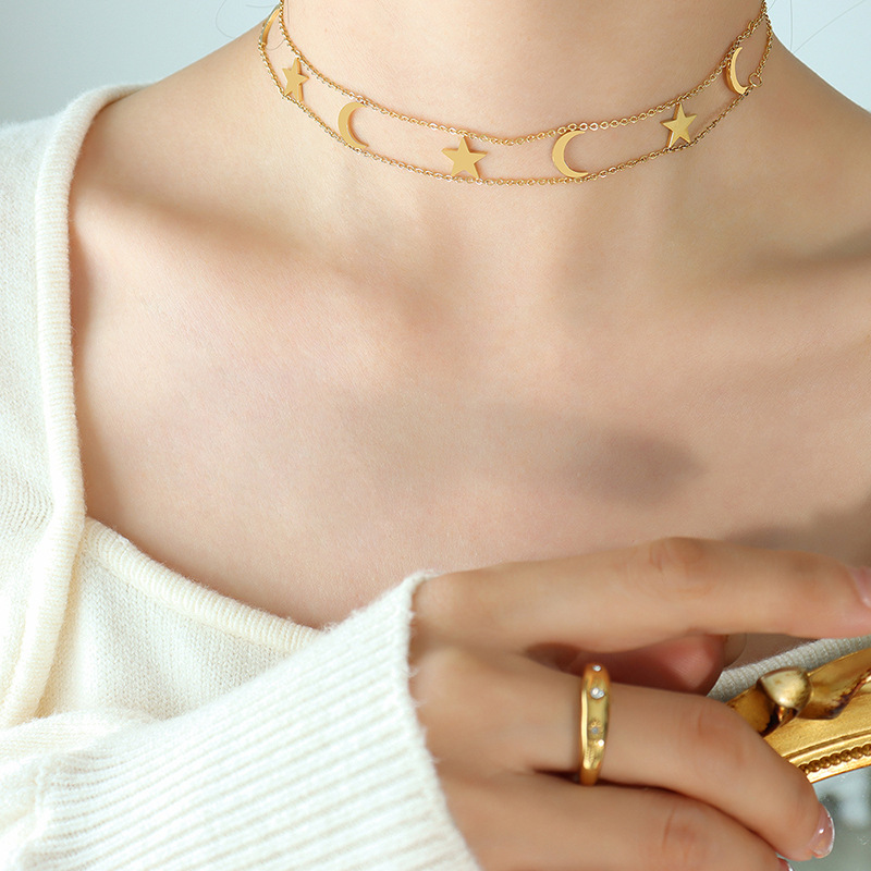 Color: P896-gold double-layer necklace, P896-necklace-32 5cm,P896-long chain-45 5cm