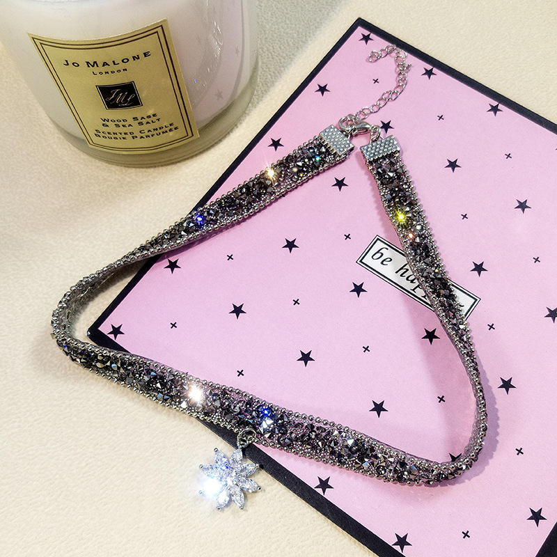Product information:Material: rhinestoneTreatment process: impregnated with crystalColor: Ice flower pendant chokerPopular elements: MetalCircumference :33*1.0cmPendant :2*1.7cmExtension chain :6.0cm