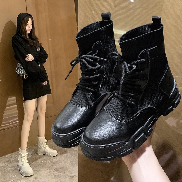 Heel shape: flat heelHeel height: low heel (1-3CM)Popular boots: Martin bootsPopular elements: waterproof platformFunction: breathable, wear-resistantTube height: middle tubeThickness: ordinary thickWearing style: front tiepattern: plain