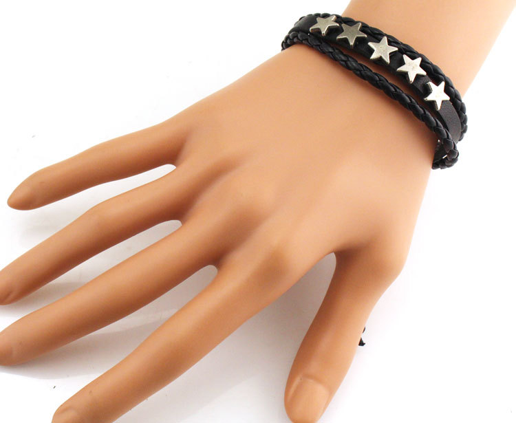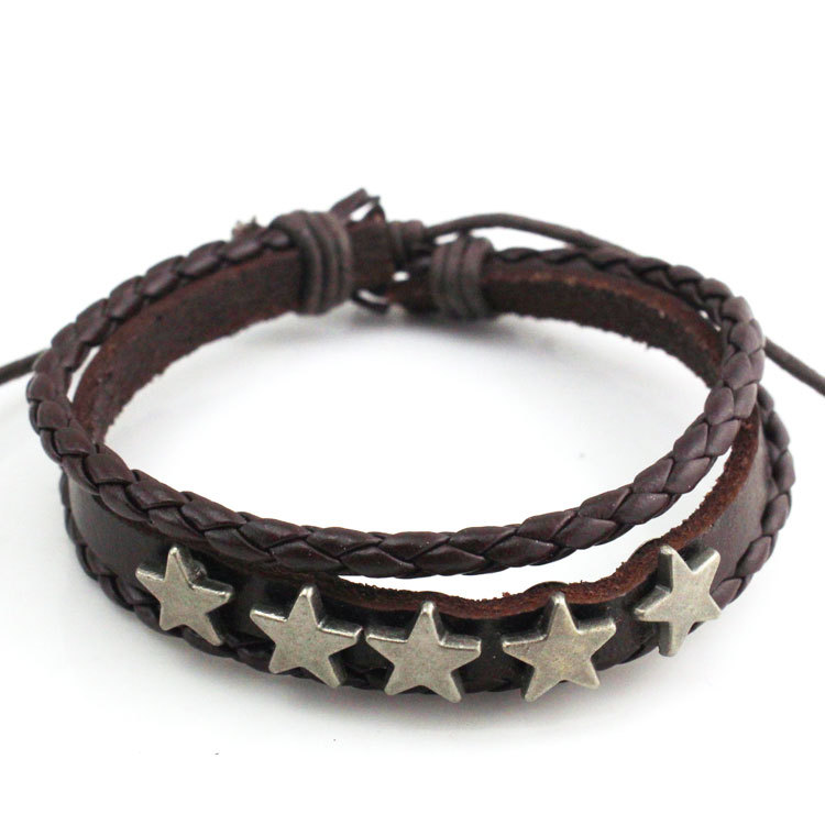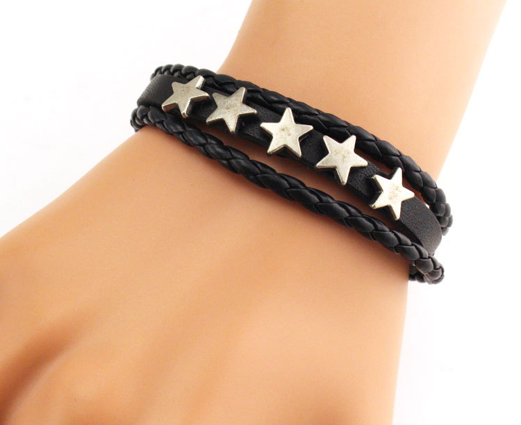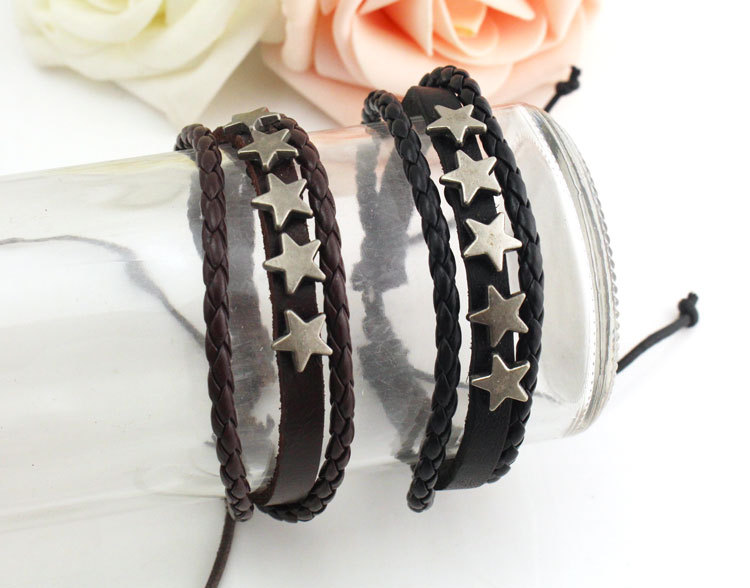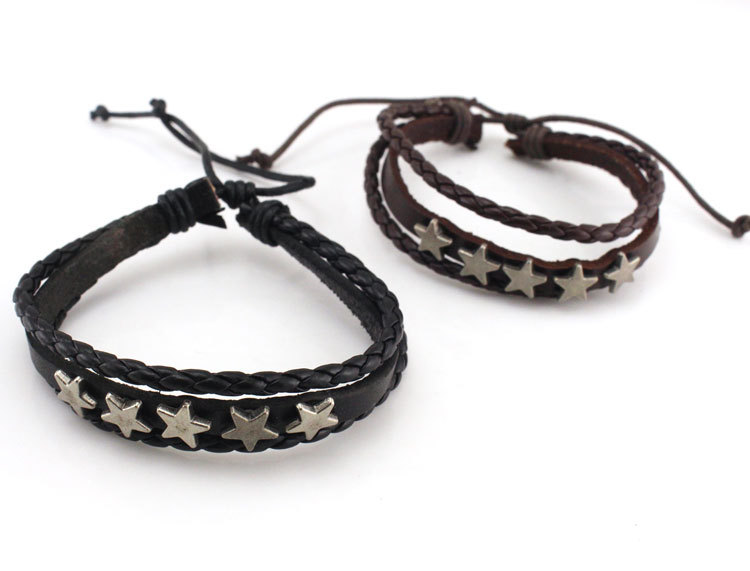 Product Description: [Five pointed Star] European and American retro genuine cowhide woven bracelet can be stretched and adjusted in size; Versatile and non mainstream styles are suitable for both men and women to wear.