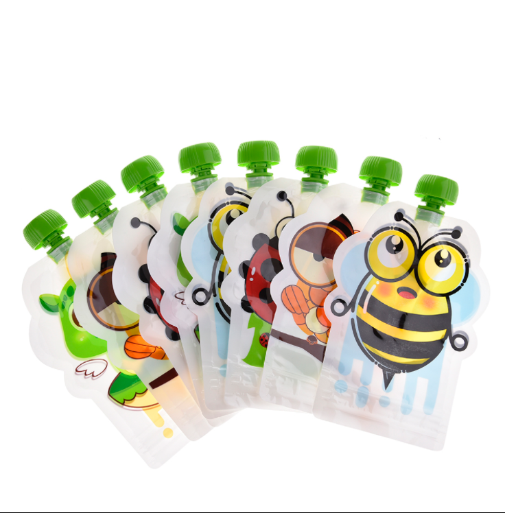 Material: PE+PASize: 170*125mmCapacity: 150mlPattern: Bee (handle type), dragon (handle type)Lion (Gourd type), Giraffe (Gourd type)
