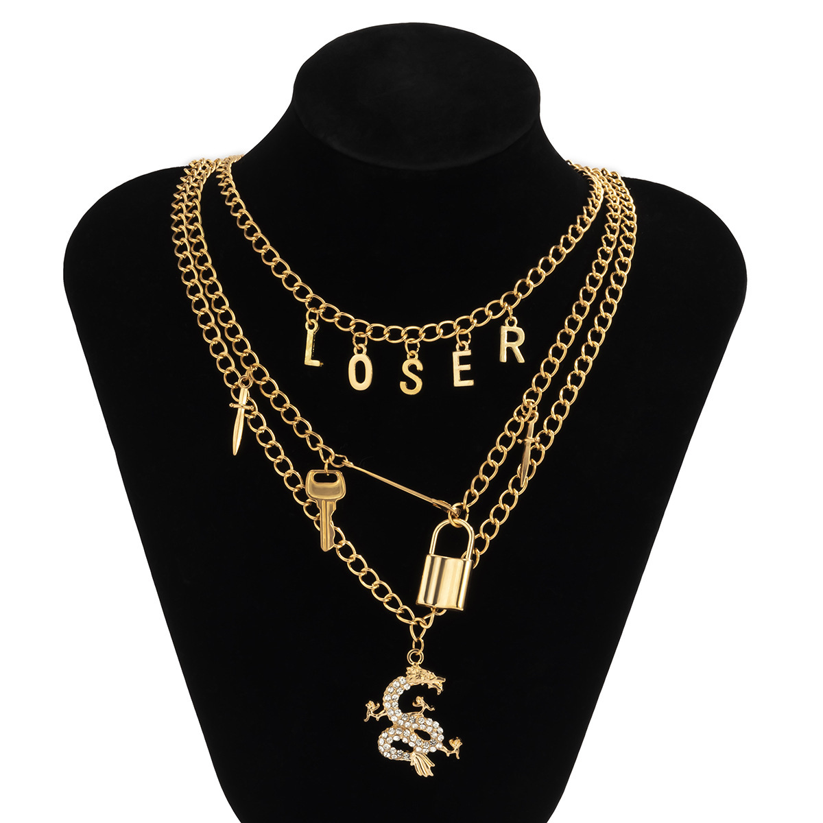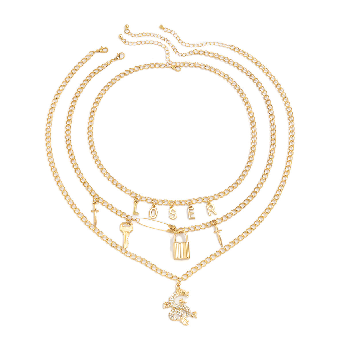 European And American Cross-border Personalized Letters Sword-shaped Key Clavicle Necklace
