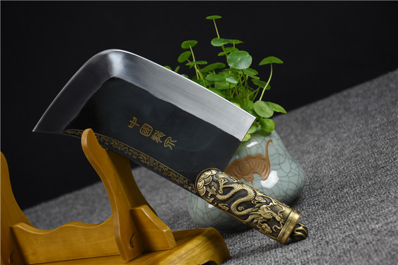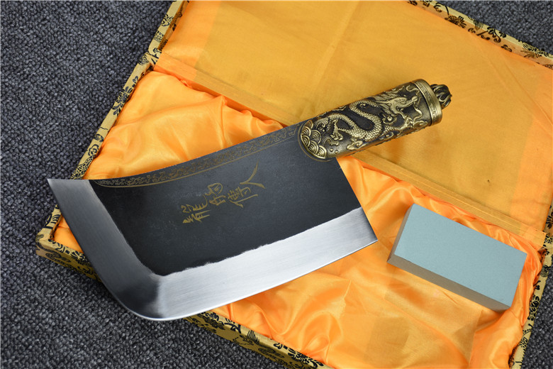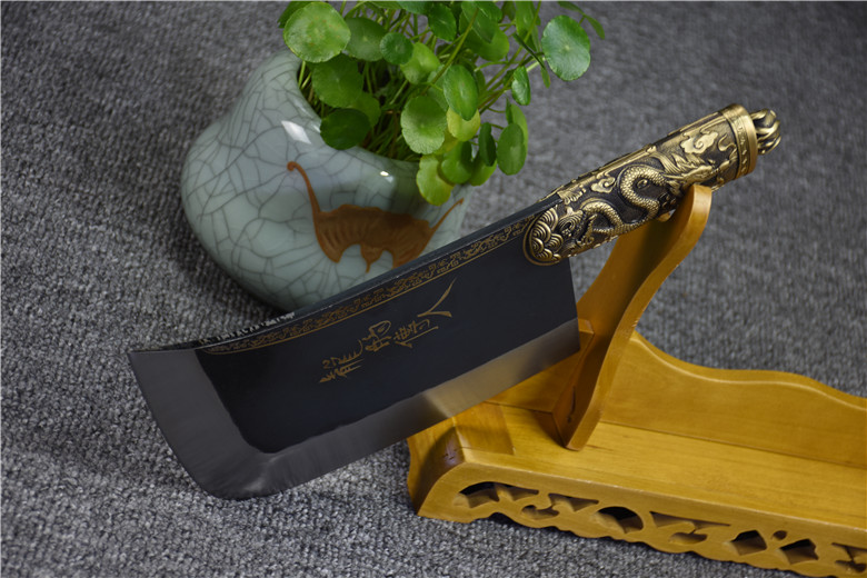 Full length: 33.5cm Blade length: 22cmHandle length: 14cm Blade width: 11.5cmThickness: 0.6cm Blade material: T10 steel