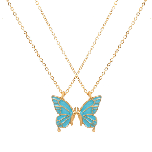 2pcs Oil Drip Butterfly Necklace Ins Creative Clavicle Chain Pendant Necklace For Women Valentine's Day Birthday Gift