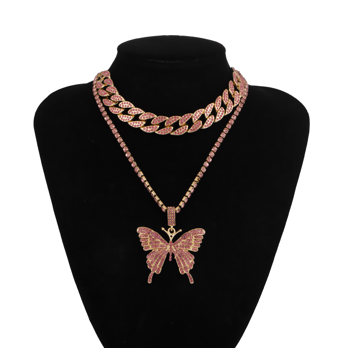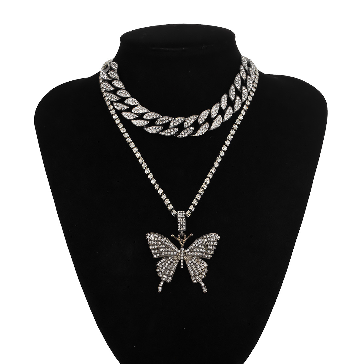 Hip Hop Butterfly Pendant Necklace Luxury Full Crystal