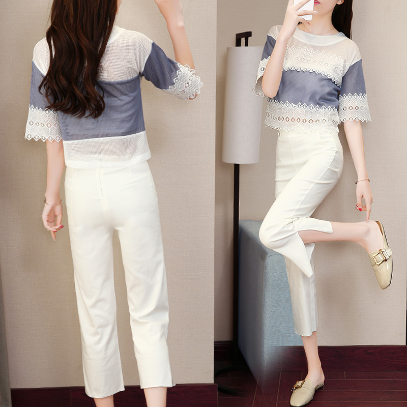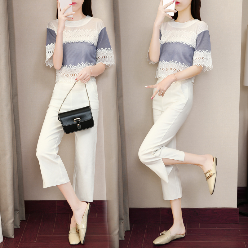2020 summer new female fashion suit spring and autumn fashion Korean version of temperament, slim waist waist leg pants two sets