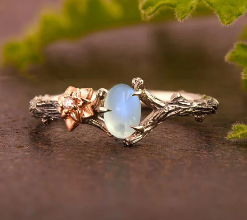 Color: Vintage Silver - Ancient Tree Moonlight Stone Ring,coppery