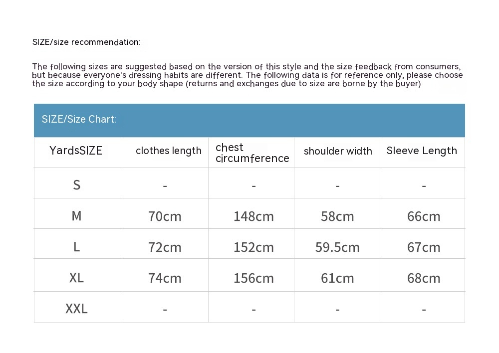 1. Asian sizes are 1 to 2 sizes smaller than European and American people. Choose the larger size if your size between two sizes. Please allow 2-3cm differences due to manual measurement. 2. Please check the size chart carefully before you buy the item, if you don't know how to choose size, please contact our customer service. 3.As you know, the different computers display colors differently, the color of the actual item may vary slightly from the following images.