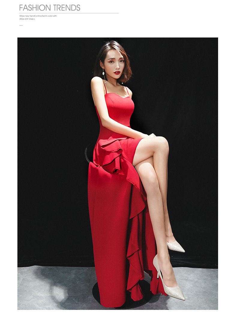 Sexy Sling Red Long Slim Wedding Evening Gown