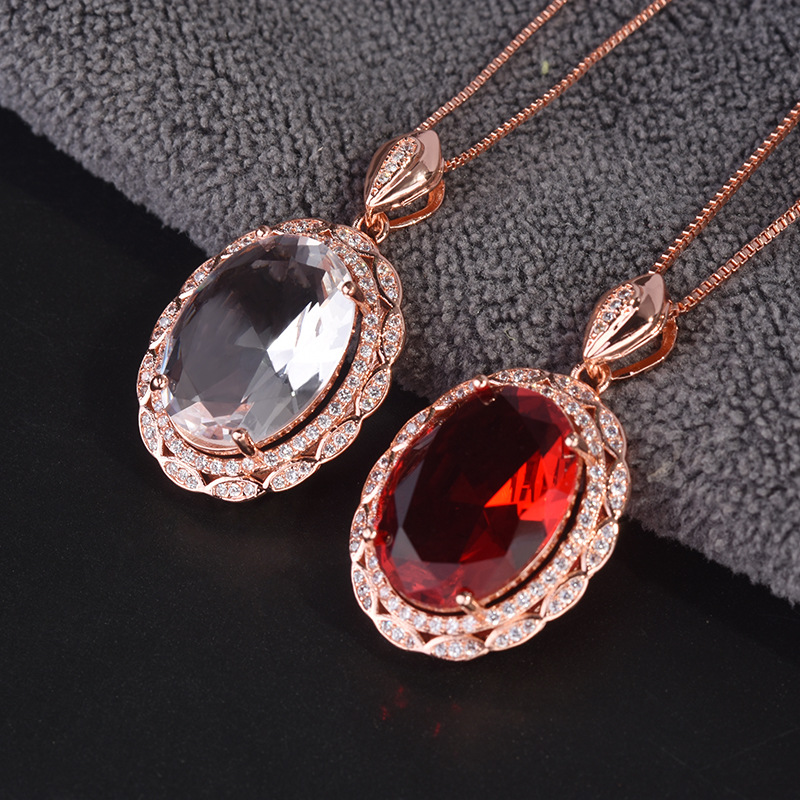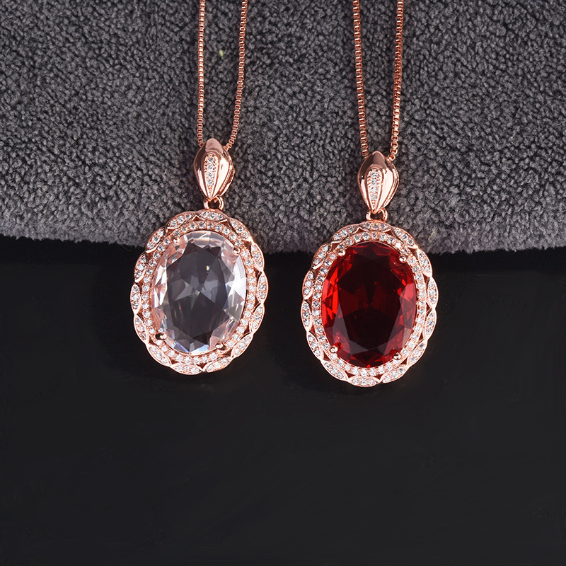 Color: rose gold and white diamonds [without chain], rose gold and red diamonds [without chain], rose gold box chain [45cm]
