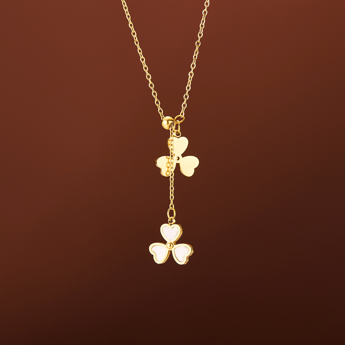 Product information:Treatment Process: Electroplating Color: clover necklace (drawable) Applicable population: Female Chain style: O-ring chain Material: titanium steel Shape: Geometry