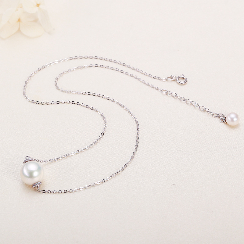 S925 Silver Single Pendant O-shaped Chain Freshwater Real Pearl Necklace