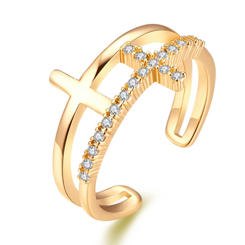 Type: live mouthMaterial: AlloyStyle: simpleShape: crossTreatment process: electroplatingStyle: Women'sInlay material: alloy inlaid rhinestones