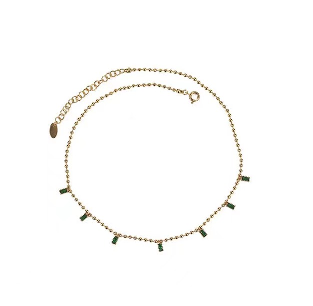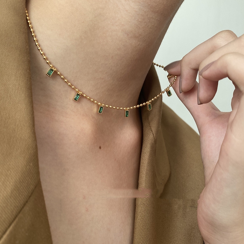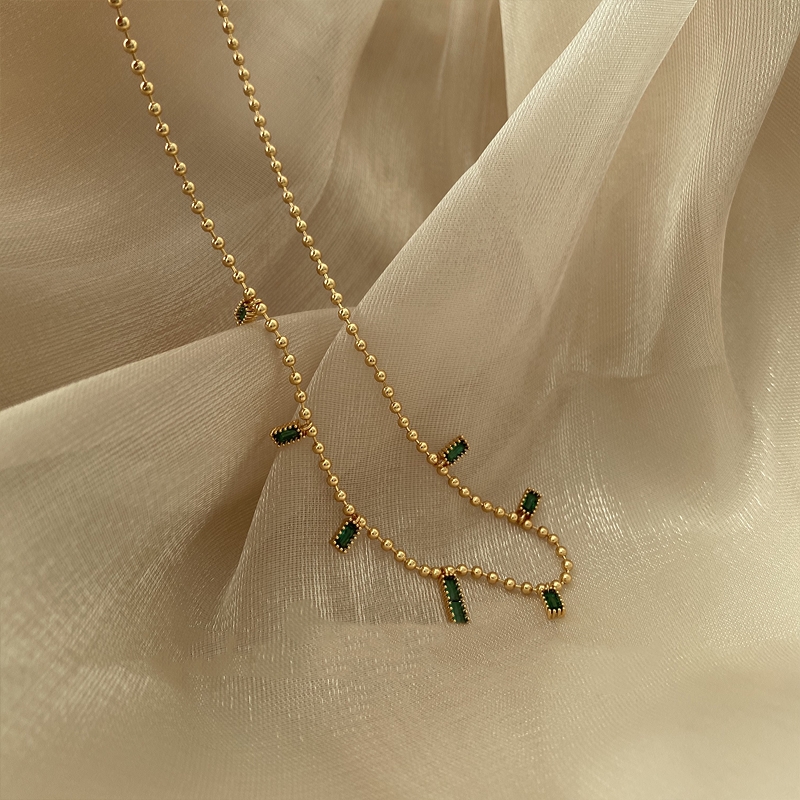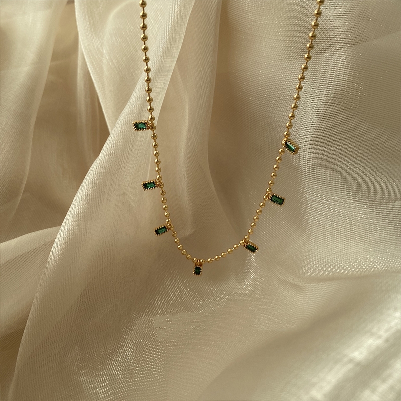 Emerald Zircon Square Pendant Round Bead Chain