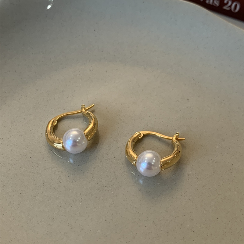 Mild Luxury Retro Round Pearl Metallic Earrings