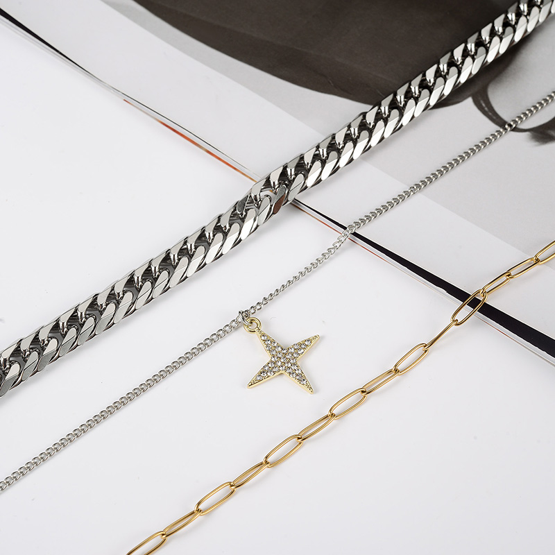 Product Information:Style: European and AmericanMaterial: stainless steel chain alloyTreatment process: electroplatingType: Clavicle ChainStyle: Women'sPacking List:Clavicle chain*1