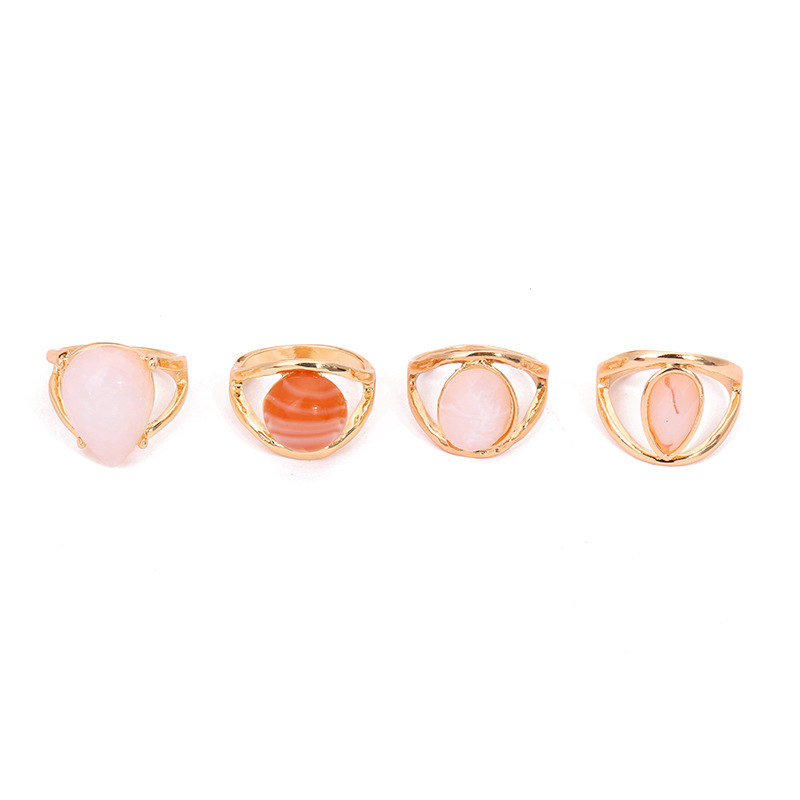 Fashion Striped Resin Ring Opel Round Water Drop Egg-shaped Two-color Ring Set