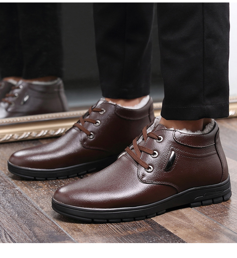Fabric: First layer cowhideRico material: warm white cotton velvetColor: black, brownInsole e: warm white cotton velvet