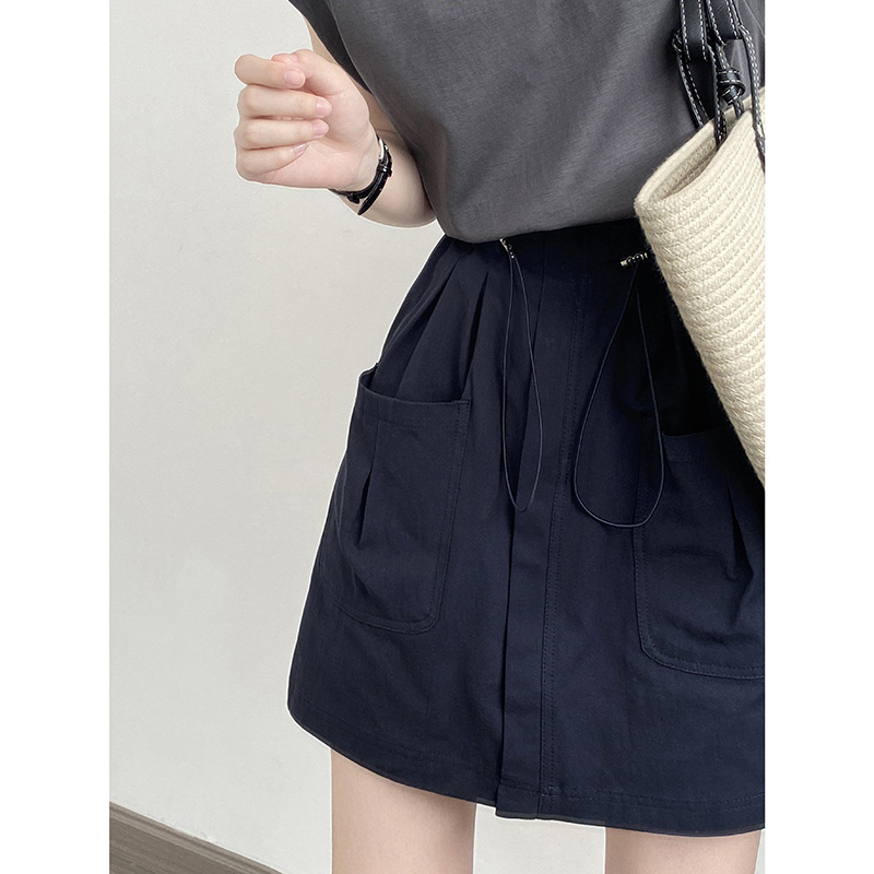 Product information: Fabric name: Boshi Cotton Skirt type: A- line skirt Color: army green, dark navy blue Elasticity: inelastic Main fabric composition: Cotton Size: M,L Skirt length: short skirt Skirt Category: skirt