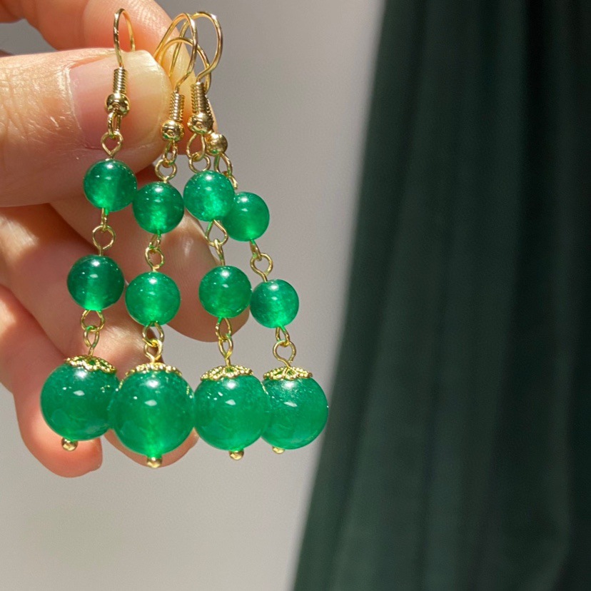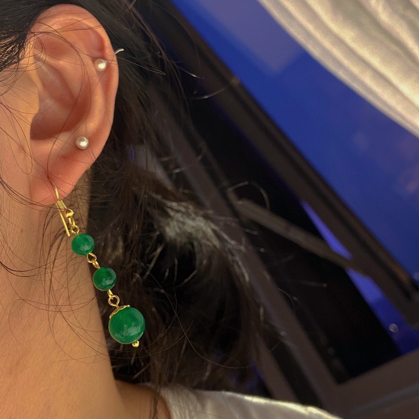 Material: gemStyle: fashion OLStyle: Women'sShape: geometricInlay material: turquoiseColor: Emerald Cat Eye Ear Hook