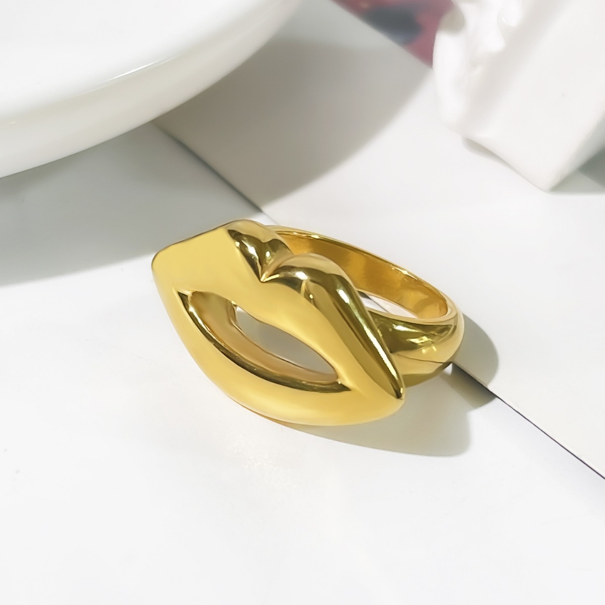 Product information:Type: RingTreatment Process: ElectroplatingColor: GoldApplicable people: womenSize: no.7, no.8, no.6Material: Stainless steelShape: GeometricPopular elements: lipsStyle: Personality