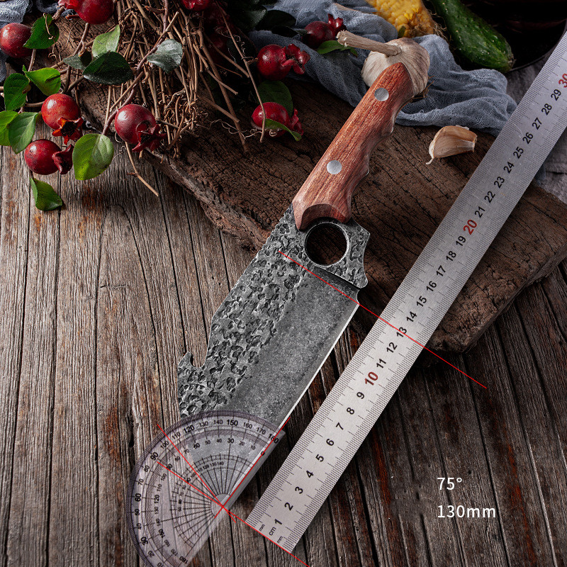 Total length: 26.60 cmHandle material: solid woodBlade length: 13cmWeight: 330 gKnife width: 6.5cmKnife thickness: 4mm