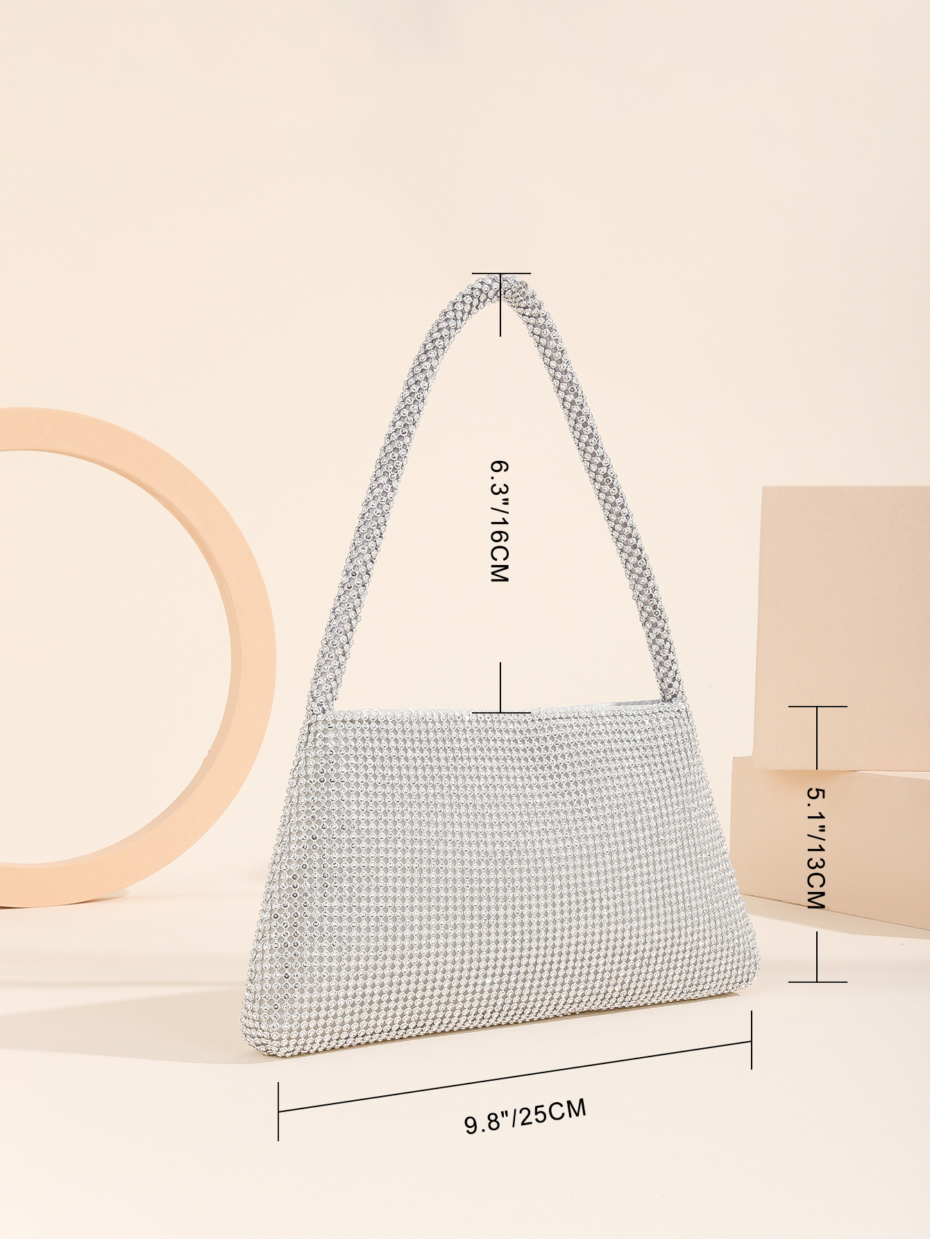 Product category: dinner bagMaterial: RhinestoneFabric texture: polyesterOpening method: zipperColor: gold, silverWeight: 118gSize: 25x2x13cm