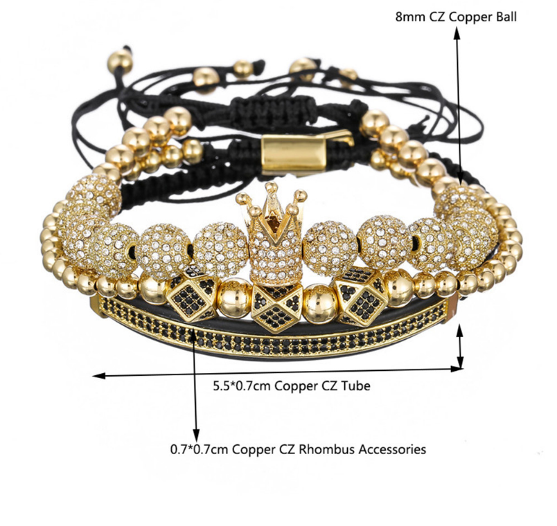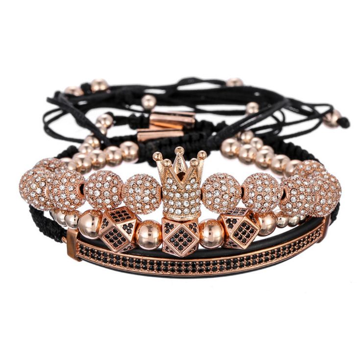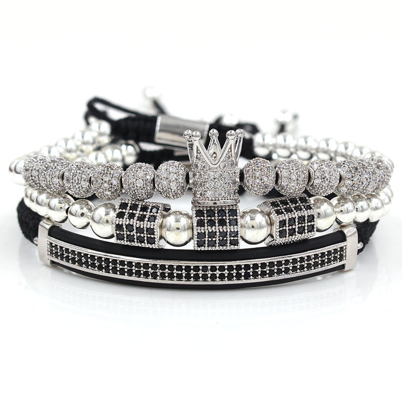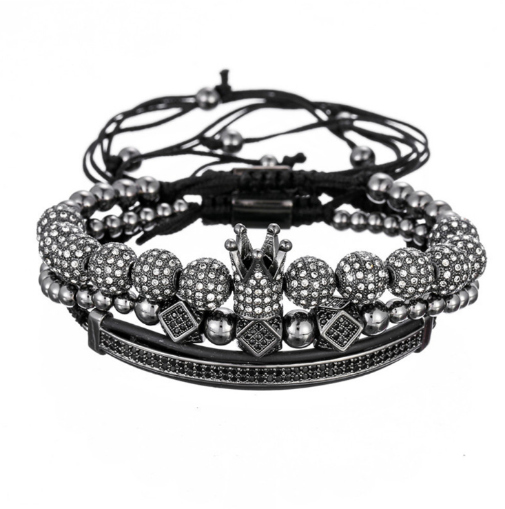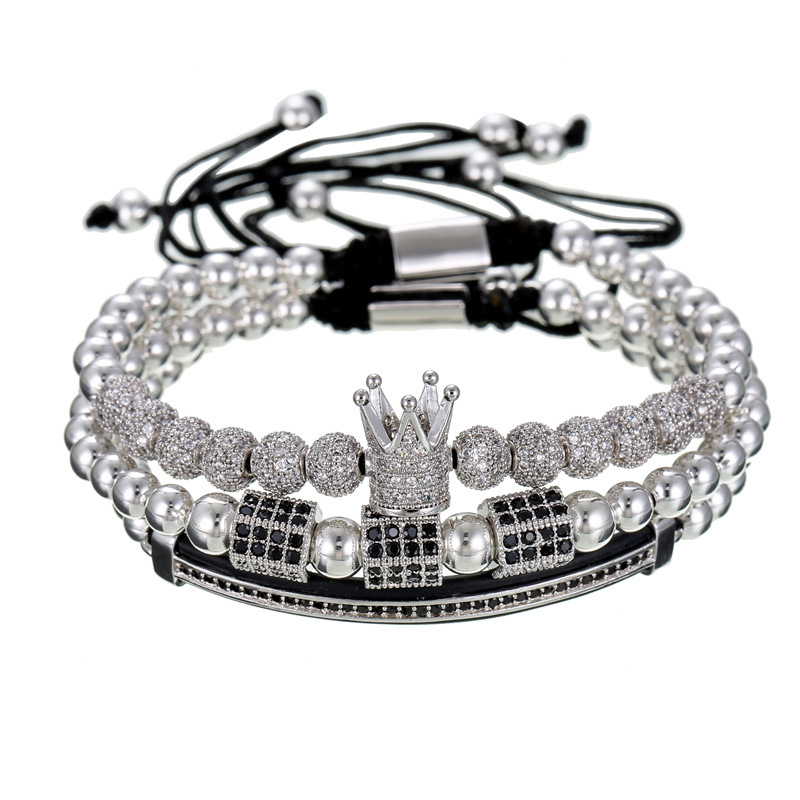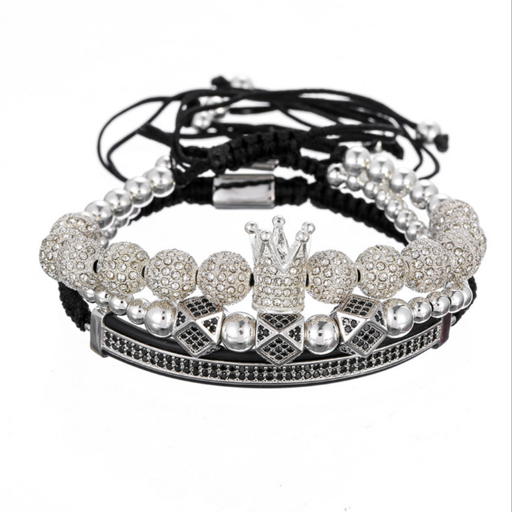 Micro-encrusted drill ball double row diamond crescent three-piece bracelet
