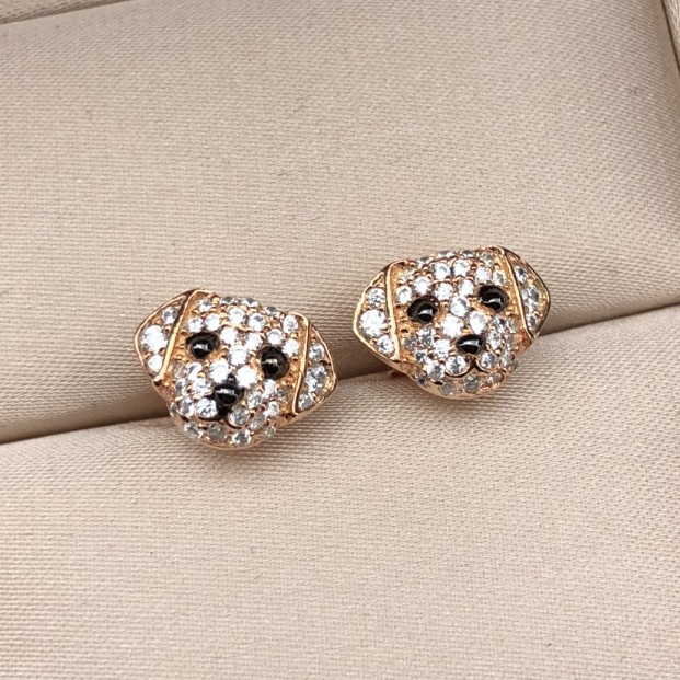 Labrador Retriever Puppy Dog 3D Solid Solid Micro Inlay Diamond Stud Earrings Cute Rose Gold 925 Sterling Silver