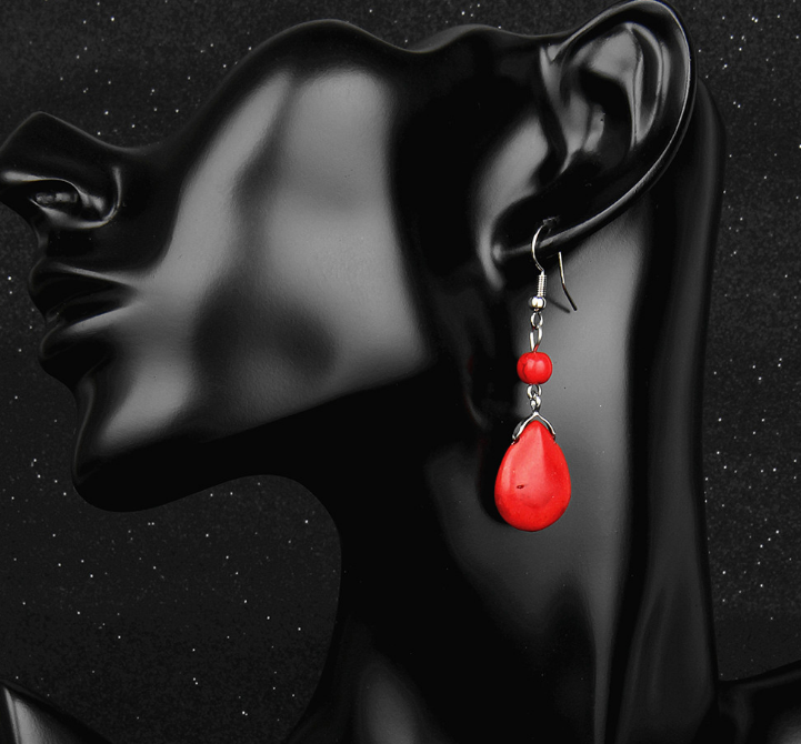 Ethnic retro simple drop water turquoise earrings hot featured texture stone earrings earrings cheap earrings