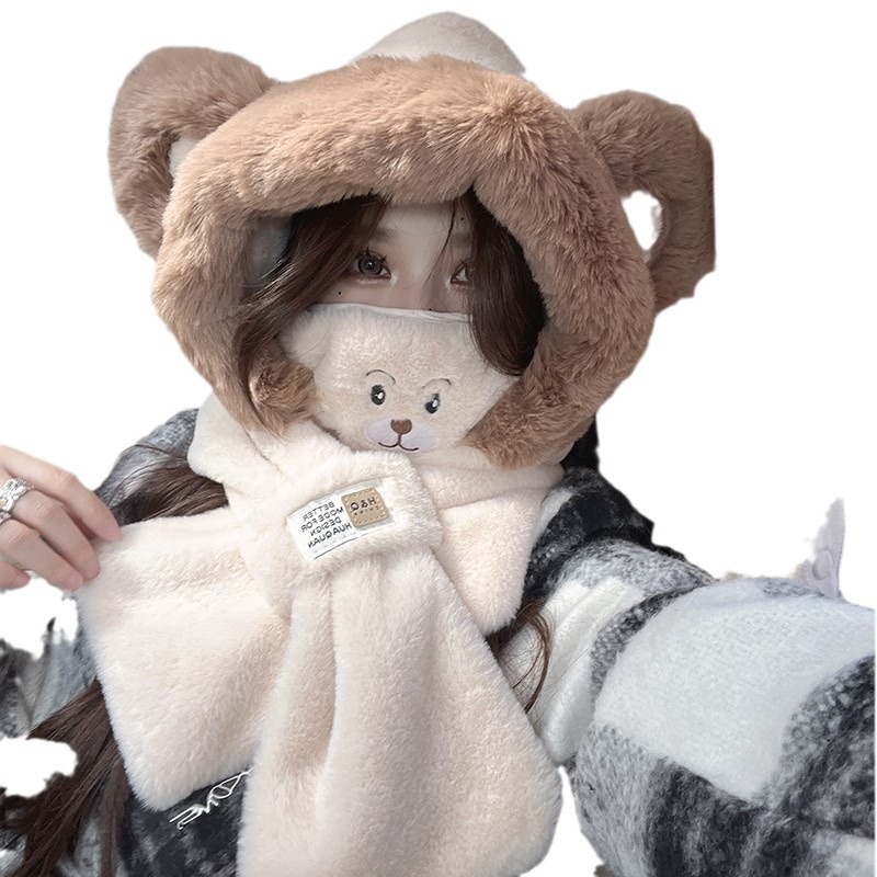 Color: khaki (hat and scarf integrated), Rose Red (hat and scarf integrated), Beige (hat and scarf integrated), khaki (hat and scarf integrated mask), rose Red (hat and scarf integrated mask), Beige (hat and scarf integrated mask)