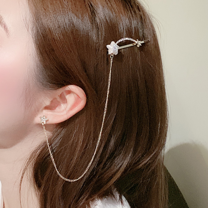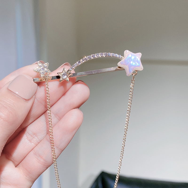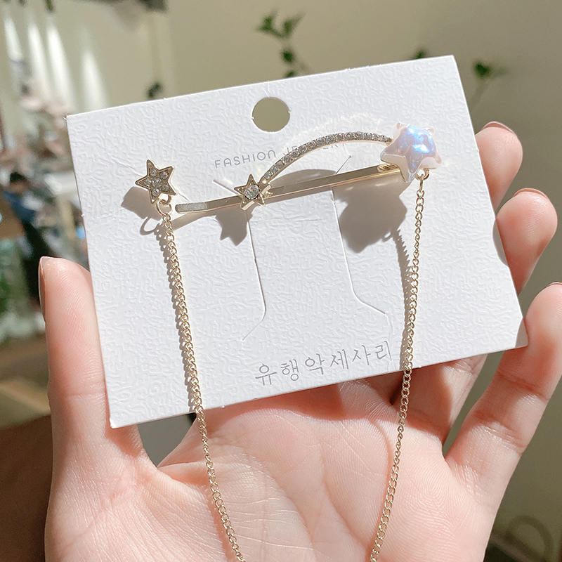 Material: metalStyle: Korean style/Korean styleStyle: Women'sShape: starHairpin classification: One word clipPopular elements: metal, rhinestones, tassels, stars