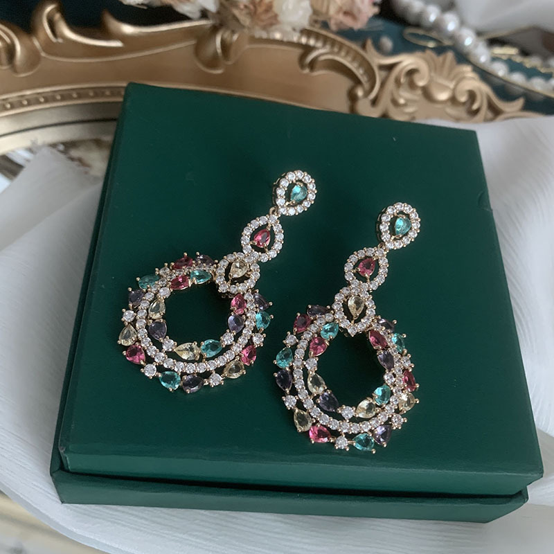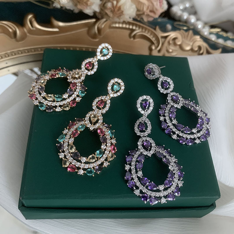 Product information:Material: CopperStyle : Women'sInlay material: white gold/K white gold inlaid with gemstonesColor: purple, colorfulSize: 5.4 cmPacking list:Earrings*1 pair