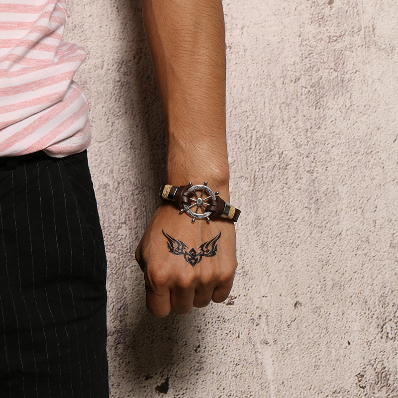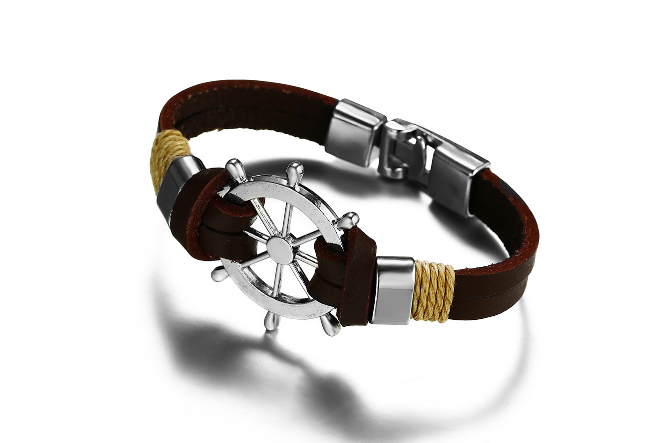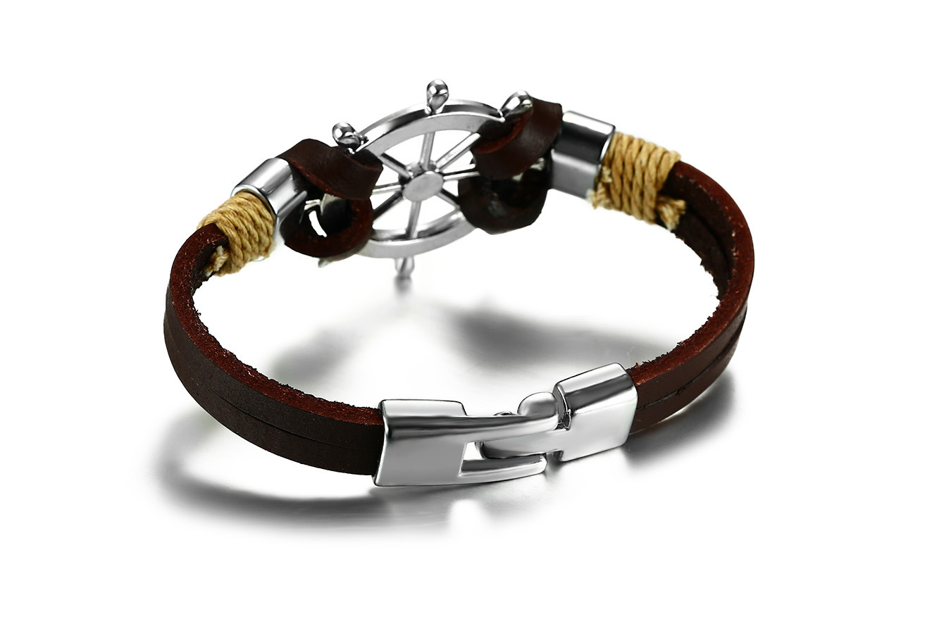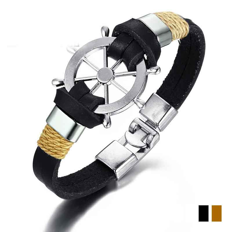 Men's Black Alloy Ship Helmsman Rope Bracelet