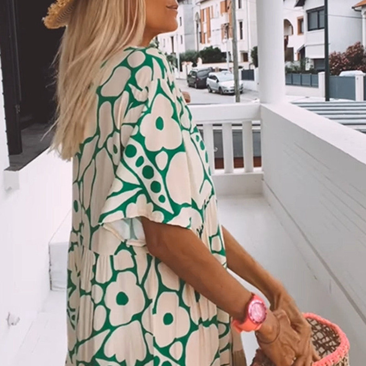 Product information:Color: green, beige, pink, black Waist type: wide waist Skirt length: long skirt Fabric name: Polyester Sleeve length: short sleeve Skirt Category: Dress Size: S,M,L,XL,XXL,XXXL