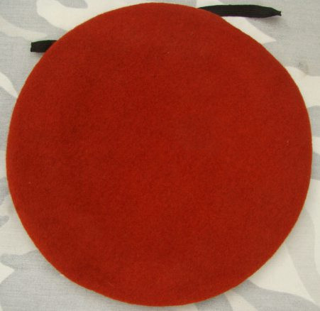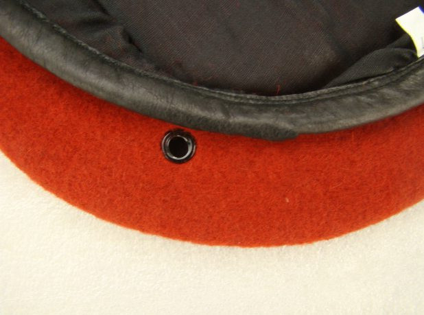 A beret made of bordeaux red and dark red wool with genuine leather border