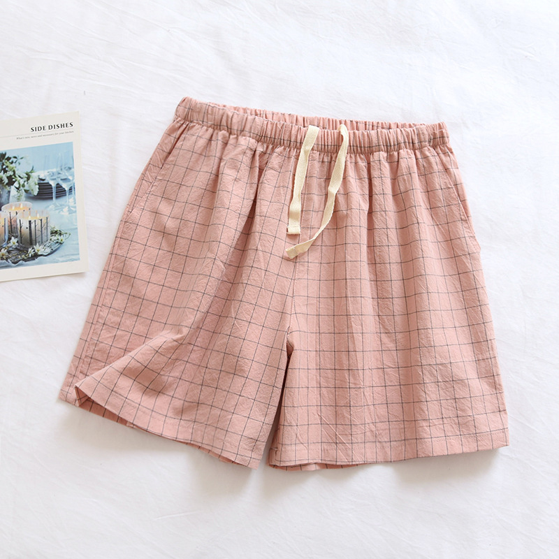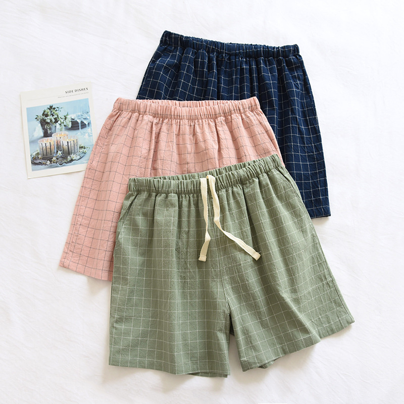 Color: pink plaid women's shorts, green plaid women's shorts, green grid women's shorts, blue plaid men's shorts, dark gray plaid men's shorts, green plaid men's shorts, green grid men's shorts
