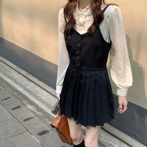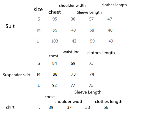 Color classification: Khaki suit, black suit, khaki suspender skirt, black suspender skirt, apricot base shirt