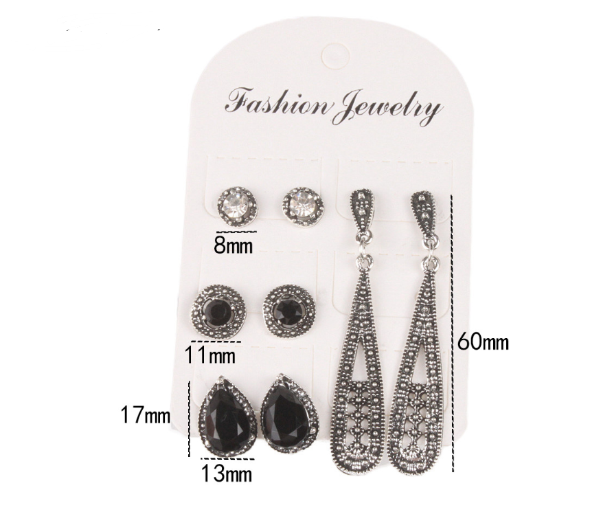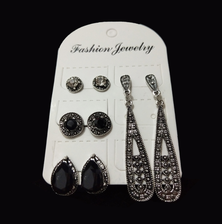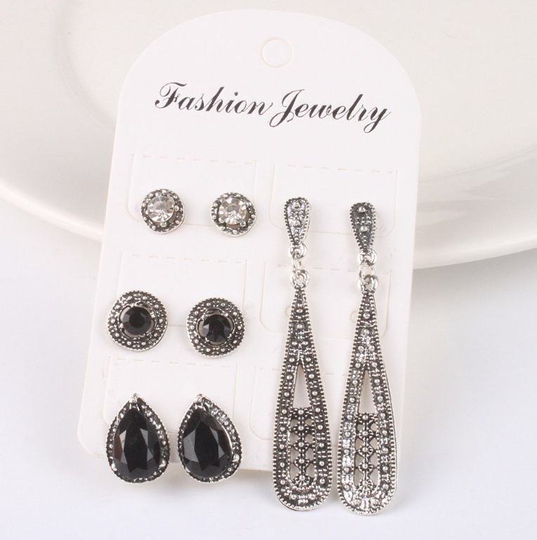 New Bohemian Black Diamond Long Vintage Zircon 4 Pair Stud Earrings Set Combination